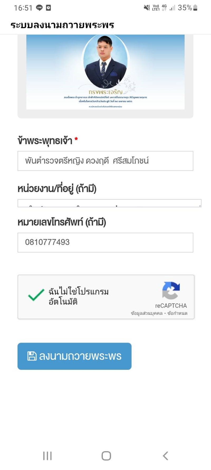 ลงนามถวายพระพร